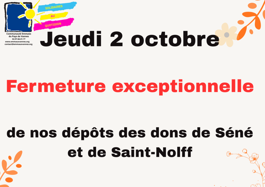 Fermé Jeudi 2 octobre sur Séné et Saint-Nolff